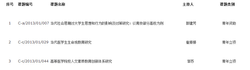根据《关于公布江苏省教育科学“十二五”规划2013年度课题的通知)(苏教科规领[2013]1号),公司立项课题共计3项(见附件)。 附件:人文与政治教育公司江苏省教育科学“十二五”规划课题立项名单