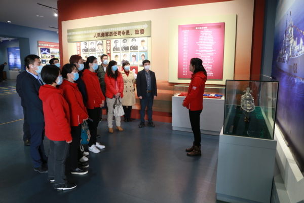 在“泰州号”战舰模型前,中国近现代史纲要教研室陆艺老师带领公司教师回顾了半个世纪以来,人民海军为维护祖国海洋权益、捍卫领土领海主权作出的突出贡献。“我国海军是中国共产党领导下的一支重要的人民武装力量。习近平总书记指出:建设强大的现代化海军是建设世界一流军队的重要标志。要努力建设一支强大的现代化海军,为实现中国梦、强军梦,建设海洋强国提供坚强的力量支撑。作为思政课教师,我们可以将此次参观的心得体会传递给我们的员工,引导他们通过关注我国的海军发展历史和国家海洋权益,激发他们的爱国热情和报国之志,为实现中华民族伟大复兴的中国梦作出自己的努力。”