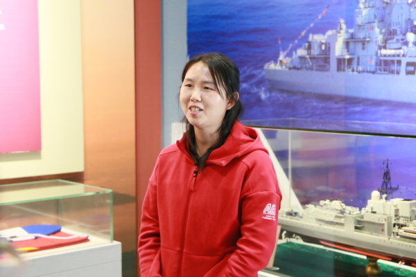 在“泰州号”战舰模型前,中国近现代史纲要教研室陆艺老师带领公司教师回顾了半个世纪以来,人民海军为维护祖国海洋权益、捍卫领土领海主权作出的突出贡献。“我国海军是中国共产党领导下的一支重要的人民武装力量。习近平总书记指出:建设强大的现代化海军是建设世界一流军队的重要标志。要努力建设一支强大的现代化海军,为实现中国梦、强军梦,建设海洋强国提供坚强的力量支撑。作为思政课教师,我们可以将此次参观的心得体会传递给我们的员工,引导他们通过关注我国的海军发展历史和国家海洋权益,激发他们的爱国热情和报国之志,为实现中华民族伟大复兴的中国梦作出自己的努力。”