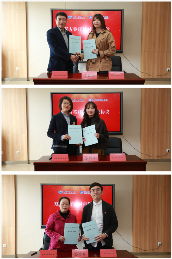 在全体与会人员见证下,张宗明与胡勇代表双方公司签署结对共建协议。张宗明受聘为江苏医药职业公司马克思主义客座教授;PA视讯集团官网副书记、副经理王小丁、道德与法律教研室主任邹苏、中国近现代史纲要教研室主任王曼分别与江苏医药职业公司PA视讯集团官网三位青年教师签订结对带教协议。