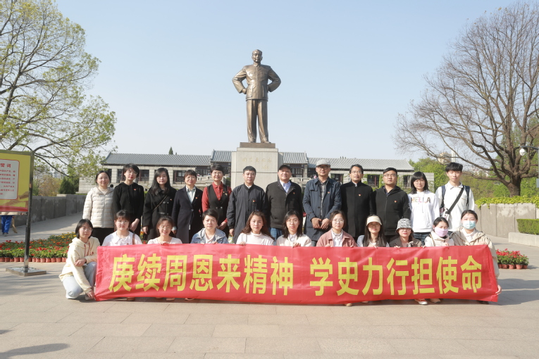 为深入学习贯彻习近平总书记在纪念周恩来同志诞辰120周年座谈会上的重要讲话精神,进一步推动党史学习教育往深里走、往实里走,4月17日至18日,PA视讯集团官网·医学人文公司党总支第三党支部赴淮安开展“赓续周恩来精神 学史力行担使命”的主题党日活动。支部全体党员教师携11名研究生党员和入党积极分子代表共同参加此次活动。