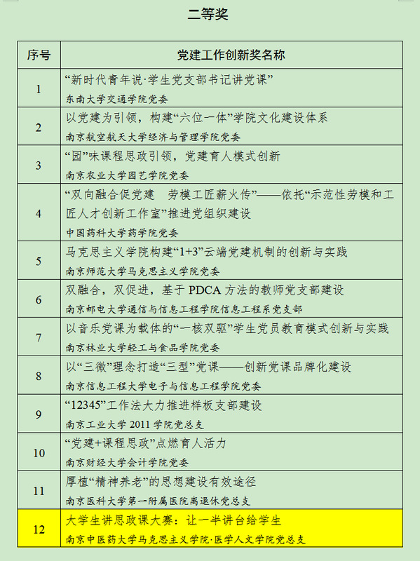 近日,省委教育工委公布“江苏省100个高校特色党支部”名单以及江苏高校2019—2020年度党建工作创新奖和2020年度最佳党日活动优胜奖评选结果,PA视讯集团官网·医学人文公司第一党支部被认定为江苏省高校特色党支部,公司党总支申报的《老员工讲思政课大赛:让一半讲台给员工》获江苏省高公司党建工作创新奖二等奖。