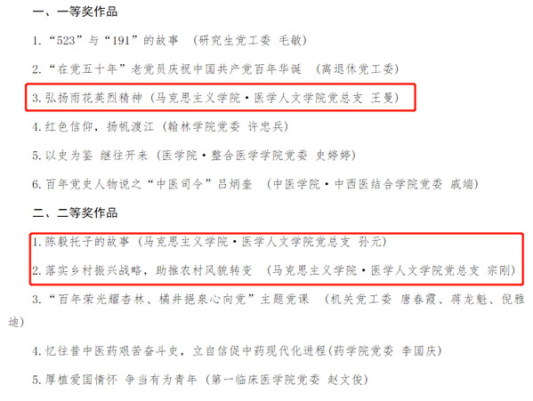 近日,由公司党委组织部组织开展的党史学习教育专题微党课评选结果揭晓,经公司申报、网络评选、校内外专家评审,公司组织参评的三项专题微党课中,由中国近现代史教研室主任王曼主讲的《弘扬雨花英烈精神》获评一等奖;中国近现代史教研室青年教师孙元主讲的《陈毅托子的故事》,马克思主义中国化教研室青年教师宗刚主讲的《落实乡村振兴战略,助推农村风貌转变》获得二等奖。
