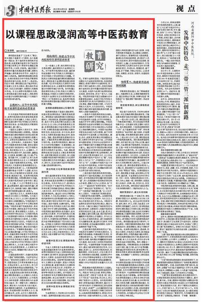 今日出版的《中国中医药报》摘编转发公司经理张宗明的理论文章《以课程思政浸润高等中医药教育》。该文由《PA视讯学报》(社科版)首发,并于国家中医药管理局官微《中国中医》推送。