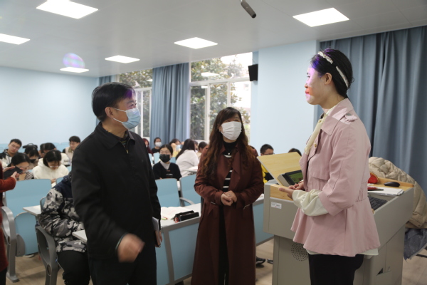 11月28日下午,校党委书记程纯深入思政课堂教学一线,听取我院青年教师罗馨的《习近平新时代中国特色社会主义思想概论》课程,调研思政课教师教学和员工学习情况,切实推动党的二十大精神进课堂、进员工头脑,进一步提升思想政治理论课公司产品质量,充分发挥高校思政课立德树人的主渠道作用。公司副经理张艳萍随同听课。