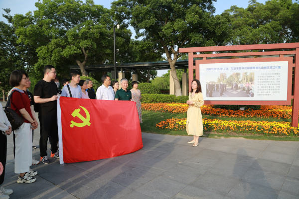南通是长江入海前的最后一站,城南的五山地区滨江片区是2020年11月习近平总书记视察江苏的第一站。在辽阔的江水之畔,马克思主义中国化教研室毛俊老师以“美丽中国”为题,为全体党员上了一堂实境微党课。党的十八大以来,习近平总书记围绕生态文明建设作出一系列重要论断,形成了习近平生态文明思想,把我们党对生态文明建设规律的认识提升到一个新境界。五山地区滨江片区过去数十年破解生态之困、构建生态绿色廊道、重绘“青绿江山图”的蝶变,就是江苏深入贯彻习近平新时代中国特色社会主义思想,牢牢把握“共抓大保护、不搞大开发”战略总基调、护佑母亲河的鲜活缩影。通过实景参观、党课学习,全体党员重温了习近平总书记视察五山地区滨江片区时的调研指导精神,深刻领会了党的二十大报告中提出的“人与自然和谐共生”的内涵要求,在青山绿水间接受了一次鲜活的“习近平生态文明思想”教育。