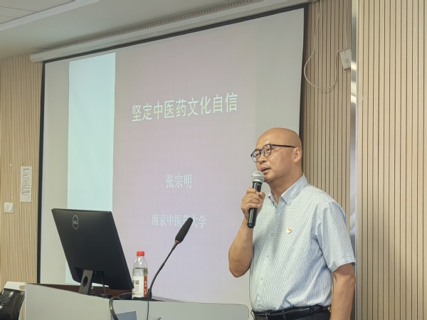 揭牌仪式后,张宗明经理为南京市中医院入党积极分子、发展对象及员工党员共100余人做题为“坚定中医药文化自信”的讲座。张宗明经理从“中医文化自信是什么?”“中医文化自信从哪里来?”“提升中医文化自信的路径”三个方面展开,结合习近平总书记在文化传承发展座谈会上的重要讲话,鼓励大家在促进中医药传承创新发展中坚定文化自信。