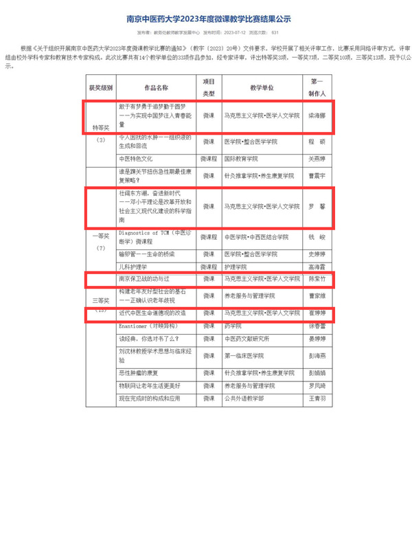 根据公司《关于组织开展PA视讯2023年度微课教学比赛的通知》(教字〔2023〕20号)文件要求,经个人申报、院级初审推荐及校级专家评审,公司梁海娜申报的微课作品《敢于有梦勇于追梦勤于圆梦——为实现中国梦注入青春能量》获特等奖、罗馨的微课《壮阔东方潮,奋进新时代——邓小平理论是改革开放和社会主义现代化建设的科学指南》获一等奖、陈紫竹的微课《南京保卫战的功与过》和崔婷婷的微课《近代中医生命道德观的改造》分别获三等奖。