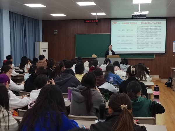 11月15日晚上, 公司党委常委、校纪委书记嵇红梅为药学231、232、233、234班员工讲授一堂课堂气氛活跃、观点鲜明、内容丰富、案例详实的以“学习党的二十届三中全会精神为主题”的形势与政策课。嵇书记还以“落实”为关键词,结合公司“廉洁南中医——杏林清风”廉洁文化品牌,在帮助同学们理解改革制胜之道的同时,增强了同学们的廉洁意识。在嵇书记的带动下,同学们纷纷结合自身成长经历,从衣食住行等多个方面分享了自己对全面深化改革的体验与感悟。