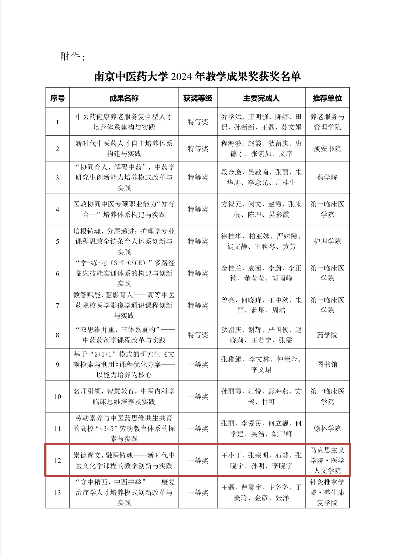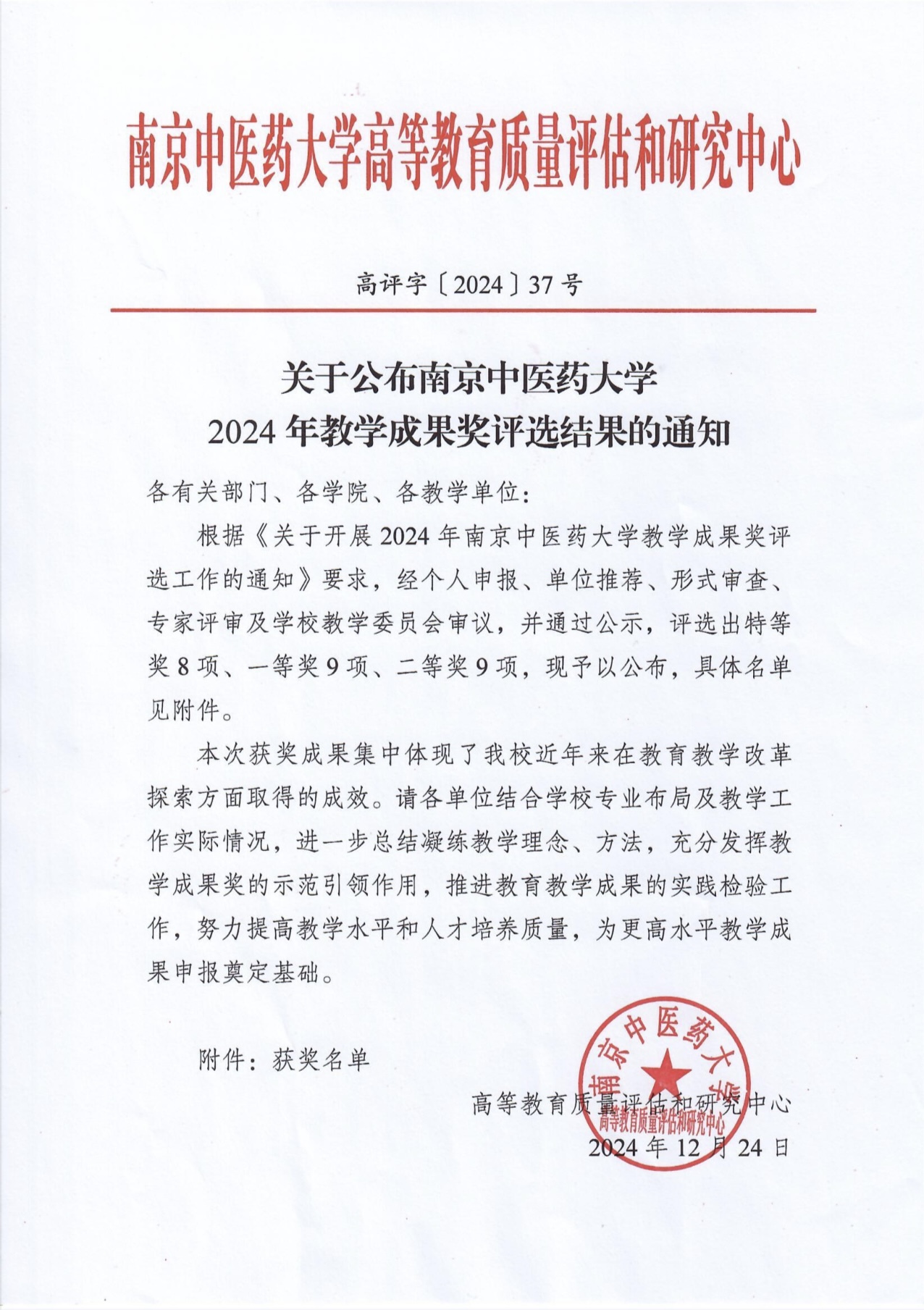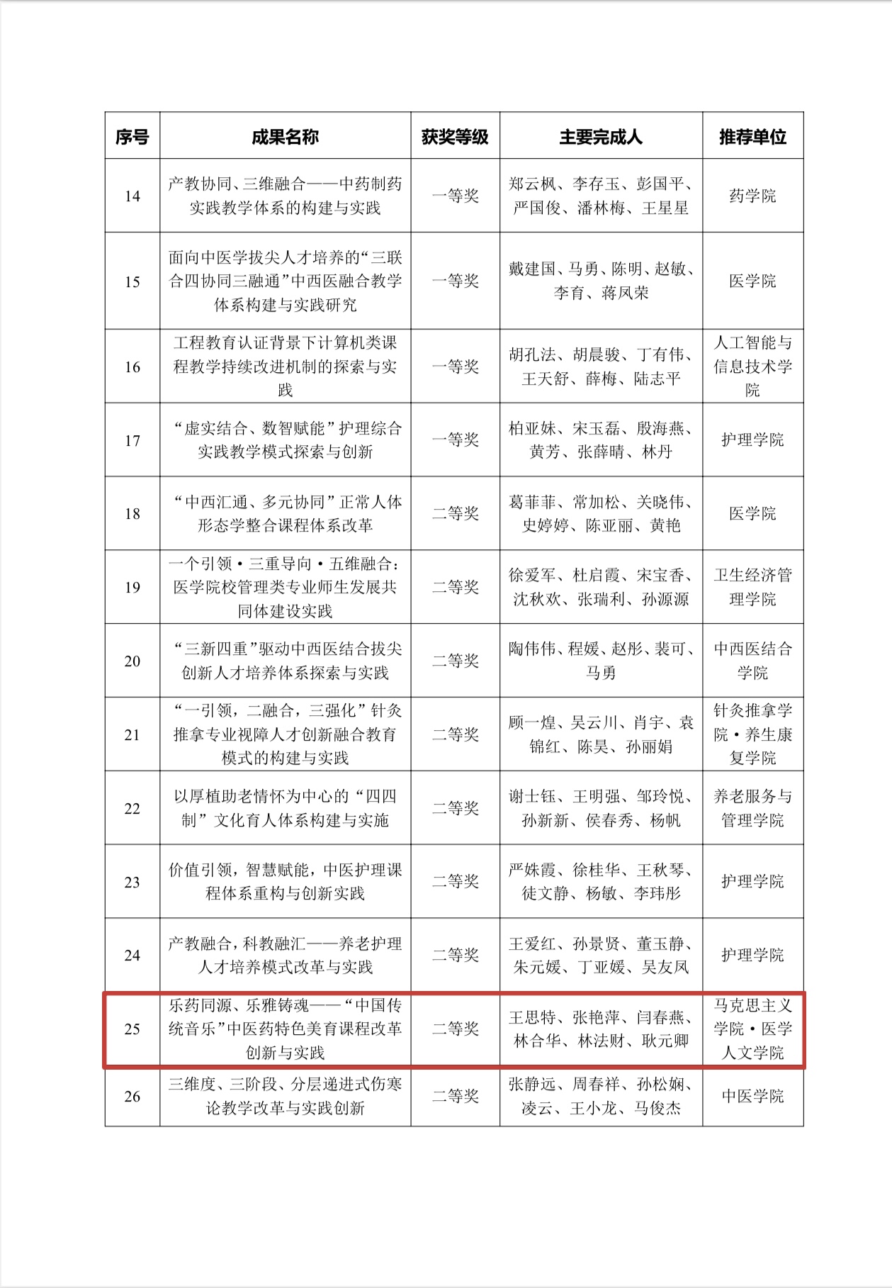 根据《关于开展2024年PA视讯教学成果奖评选工作的通知》要求,经个人申报、院级评审和推荐,公司向公司报送的4项作品中有2项作品入围校级评选。通过公司形式审查、专家评审及学校教学委员会审议、公示,公司王小丁副书记、副经理的《崇德尚文,融医铸魂——新时代中医文化学课程的教学创新与实践》荣获公司教学成果一等奖、王思特副教授《乐药同源、乐雅铸魂——“中国传统音乐”中医药特色美育课程改革创新与实践》荣获二等奖。
