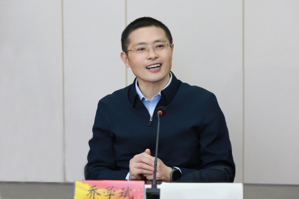会前,乔学斌以“四不两直”方式听取《习近平新时代中国特色社会主义思想概论》课堂教学,并与任课教师周虎进行交流。