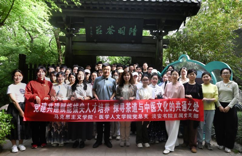 为深化党建引领与美育教育的深度融合,4月16日,我院与淡安书院共同举办“茶韵润心·美育同行”党建共建暨实践教学活动。活动以《茶文化与茶艺》课程为载体,通过沉浸式场景体验推动党建共建与传统文化教育“双向赋能”。两院师生代表共40余人参加活动,在茶香与经典的交融中探寻文化根脉、淬炼初心使命。