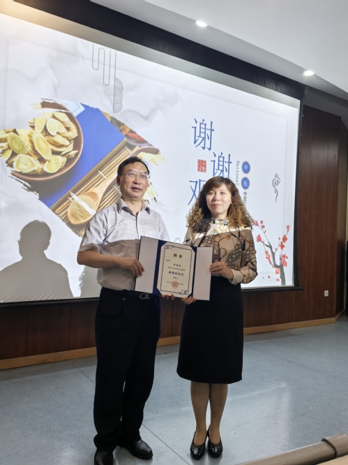 讲座临近结束,中医文化研究院举行了简短的聘任仪式,我公司党总支书记张艳萍代表公司聘请何清湖教授为公司中医文化研究院特聘研究员。