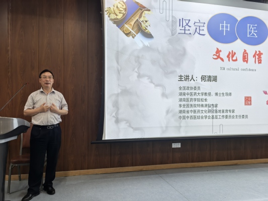5月29日晚上18:30,由公司中医文化研究院主办的中医文化系列讲座第六十二讲在仙林校区B7-103阶梯教室举行。湖南医药公司经理何清湖教授应邀为全校师生做了题为《坚定中医文化自信》的专题讲座。此次讲座由中医文化研究院经理张宗明教授主持。