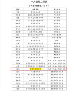 近日,江苏省教育厅公布第三届江苏省高校艺术教师基本功展示结果,公司文化艺术教研室专任教师杨光获得公共艺术教育组个人全能二等奖。