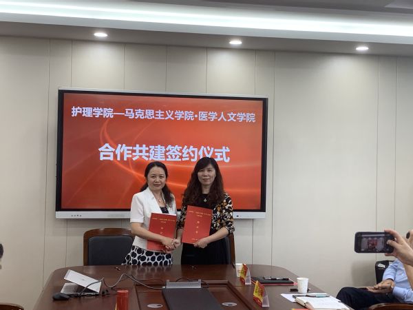在与会领导和教师代表的共同见证下,在热烈的掌声中,张艳萍和柏亚妹分别代表PA视讯集团官网·医学人文公司和护理公司签署了合作共建协议。